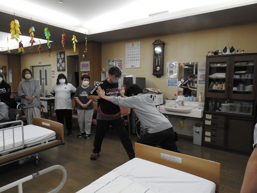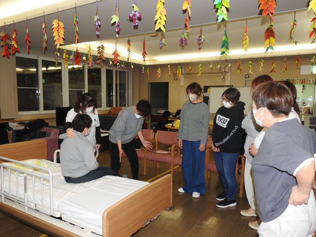 ベッド上での体位交換と移乗介助を中心に、 入所者・職員ともに負担のかからない介護技術を教えていただきました。間違った体勢での介護は入所者だけではなく、職員にも負担がかかるので、今まで行っていた介護方法を見直す良い機会となりました。