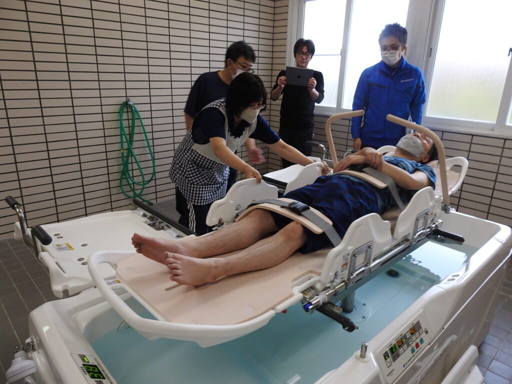 今回導入された新しい浴槽を活用し、入所者と職員が「ともに笑顔で」リラックスした入浴時間を過ごせるように努めてまいりたいと思います。