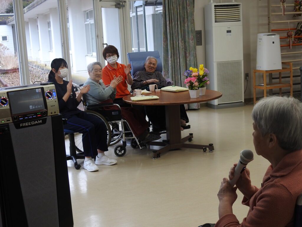 みなみかやべ荘では、2月生まれの入所者さんをお祝いする誕生会を開催しました。