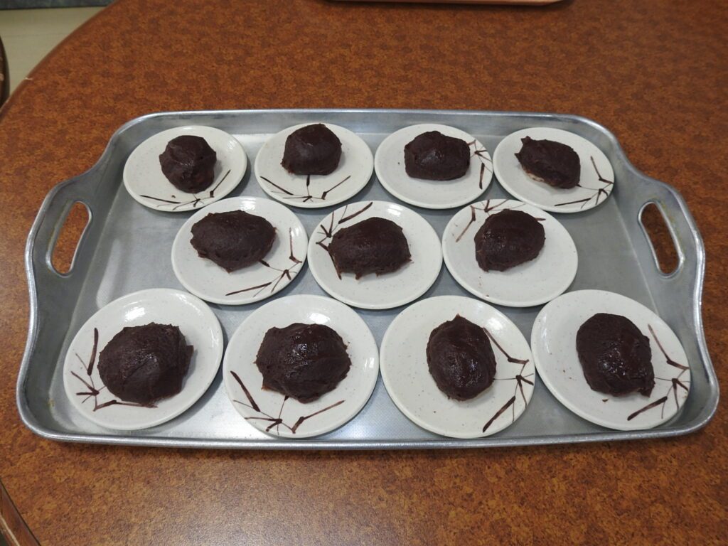 春のお彼岸に合わせて、当施設の栄養士と調理スタッフが心を込めてぼたもちを手作りしました。