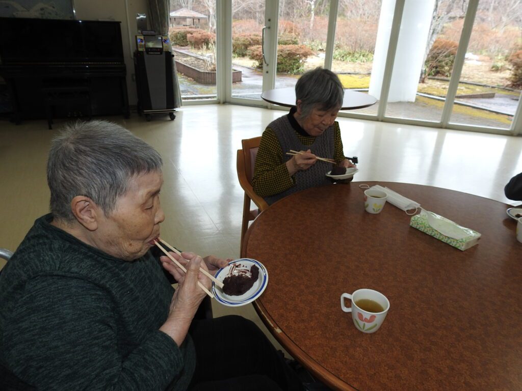 朝早くからもち米を炊き、あんこを丸め、ひとつひとつ丁寧に仕上げたぼたもちは、どこか懐かしい味わいです。おやつの時間に提供すると、入所者のみなさんからは「昔よく作ったねぇ」「やっぱり手作りはおいしいね」といった笑顔と嬉しいお声がたくさん聞かれました。